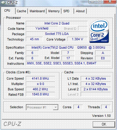 Результат разгона Intel Core 2 Quad (Yorkfield)