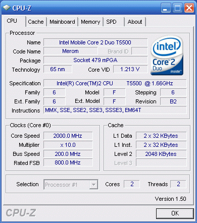 Результат разгона Intel Mobile