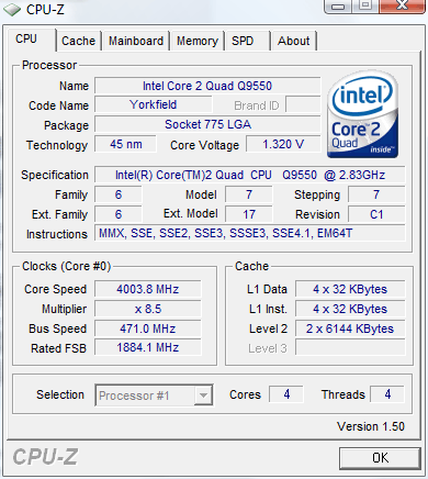 Результат разгона Intel Core 2 Quad (Yorkfield)