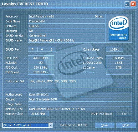 Результат разгона Intel Pentium 4 (Prescott-2M)