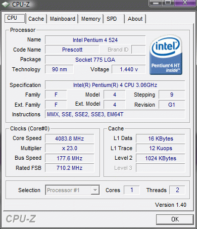 Результат разгона Intel Pentium 4 (Prescott)