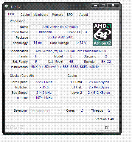 | Процессор (ядро) | AMD Athlon 64 X2 (Brisbane) |