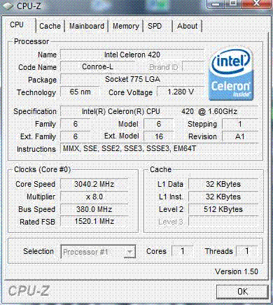 | Процессор (ядро) | Intel Celeron (Conroe-L) |