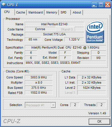 Результат разгона Intel Pentium Dual-Core (Conroe-1M)