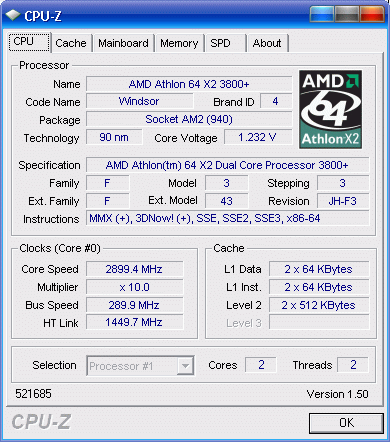 | Процессор (ядро) | AMD Athlon 64 X2 (Windsor) |