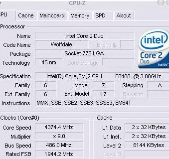 Результат разгона Intel Core 2 Duo (Wolfdale)