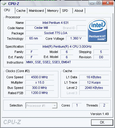 | Процессор (ядро) | Intel Pentium 4 (CedarMill) |