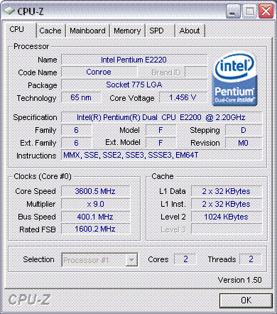 Результат разгона Intel Pentium Dual-Core (Conroe-1M)
