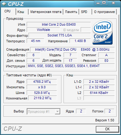 Результат разгона Intel Core 2 Duo (Wolfdale)