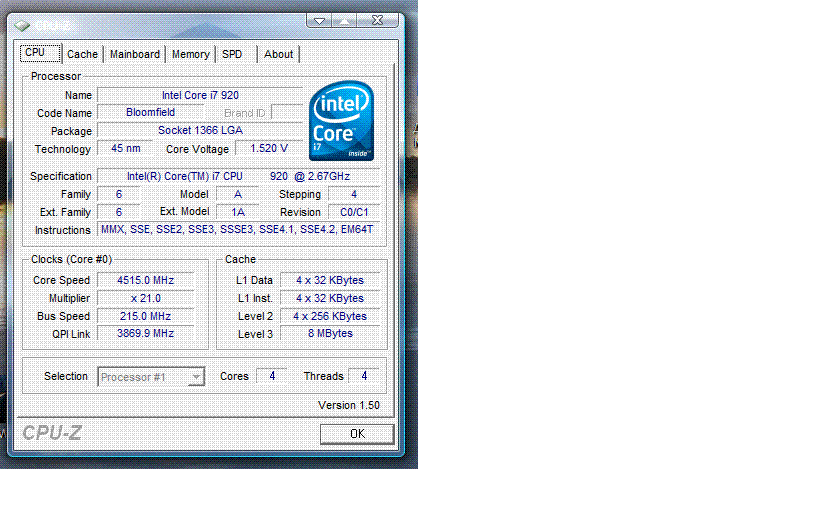 Результат разгона Intel Core i7 (Bloomfield)