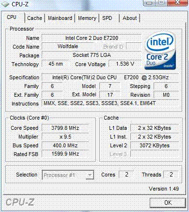 Результат разгона Intel Core 2 Duo (Wolfdale)