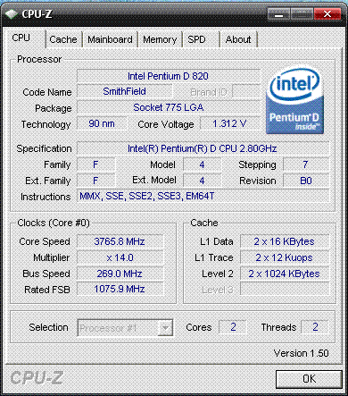 | Разгон, максимально стабильная частота (FSB x Ratio) | 3766 (269 x 14.0) |