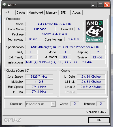 Результат разгона AMD Athlon 64 X2 (Brisbane)