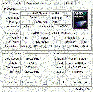 | Процессор (ядро) | AMD Phenom II X4 (Deneb) |