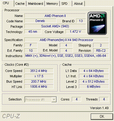 Результат разгона AMD Phenom II X4 (Deneb)