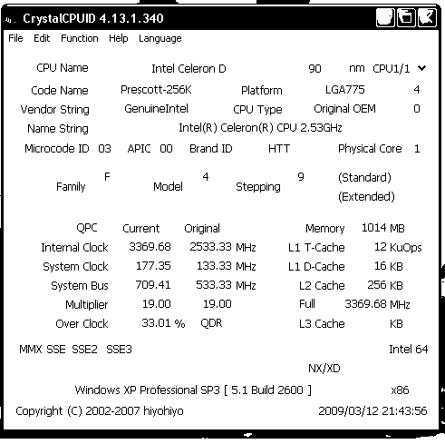 | Разгон, максимально стабильная частота (FSB x Ratio) | 3363 (177 x 19.0) |