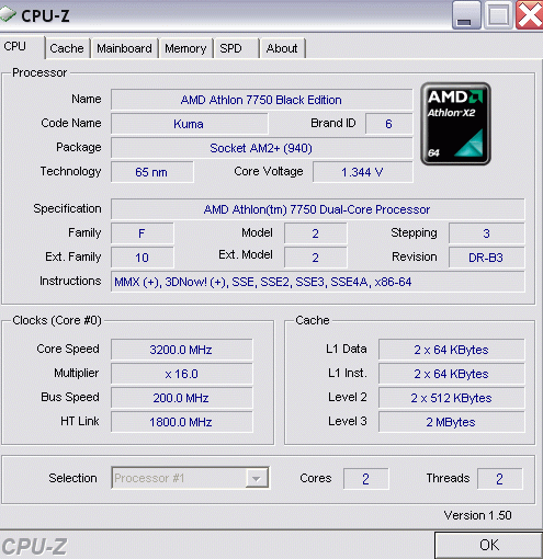 | Процессор (ядро) | AMD Athlon 64 X2 (Windsor) |