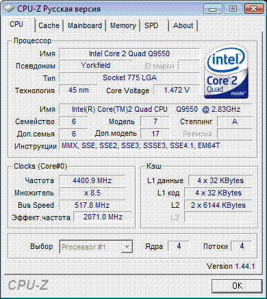 Результат разгона Intel Core 2 Quad (Yorkfield)