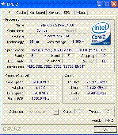 | Разгон, максимально стабильная частота (FSB x Ratio) | 3200 (320 x 10.0) |