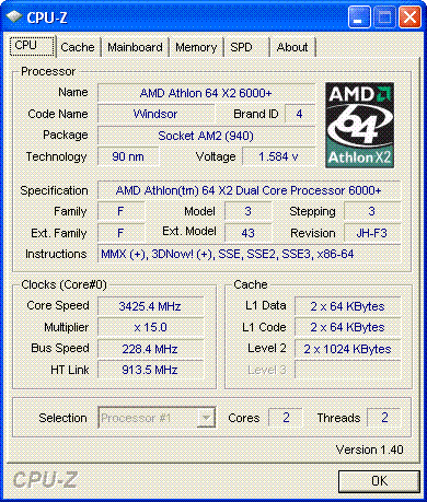 | Процессор (ядро) | AMD Athlon 64 X2 (Windsor) |