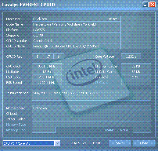 | Разгон, максимально стабильная частота (FSB x Ratio) | 3500 (280 x 12.5) |