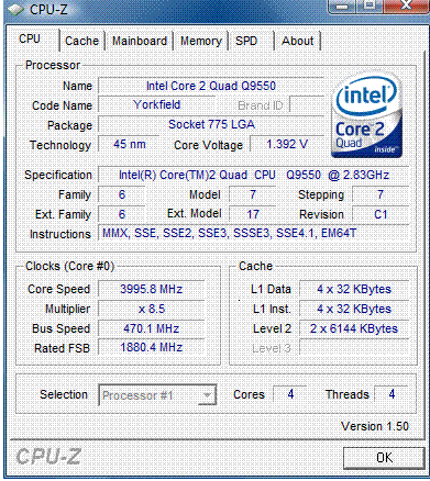 Результат разгона Intel Core 2 Quad (Yorkfield)