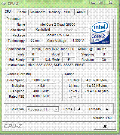 Результат разгона Intel Core 2 Quad (Kentsfield)