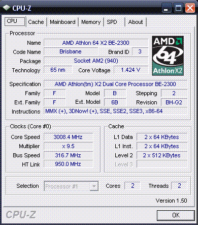 Результат разгона AMD Athlon 64 X2 (Brisbane)