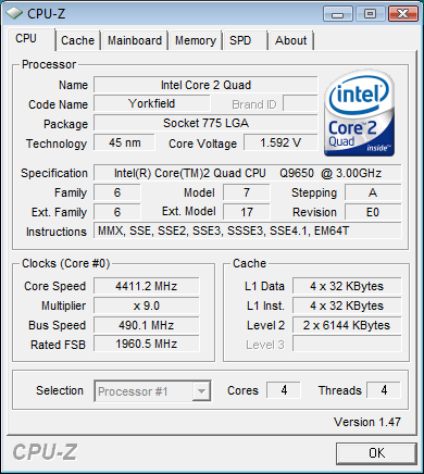 Результат разгона Intel Core 2 Quad (Yorkfield)
