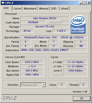Результат разгона Intel Pentium Dual-Core (Wolfdale-2M)