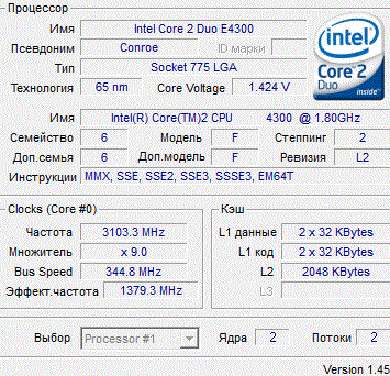 | Процессор (ядро) | Intel Core 2 Duo (Conroe) |