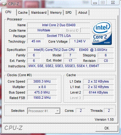 Результат разгона Intel Core 2 Duo (Wolfdale)