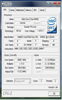 Результат разгона Intel Core 2 Duo (Conroe-2M)