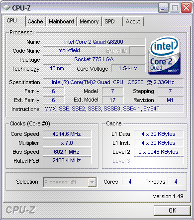 Результат разгона Intel Core 2 Quad (Yorkfield)