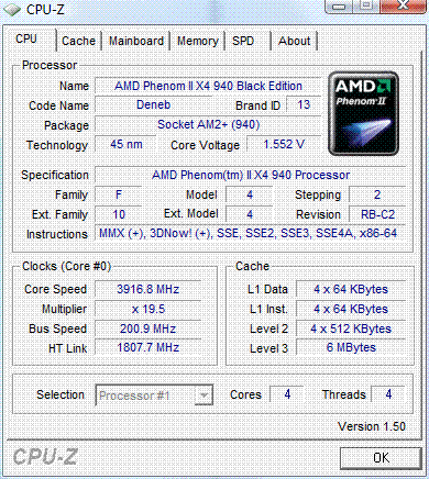 | Процессор (ядро) | AMD Phenom II X4 (Deneb) |