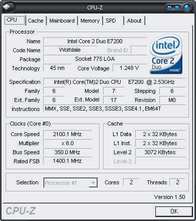 Результат разгона Intel Core 2 Duo (Wolfdale)
