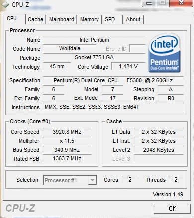 Результат разгона Intel Pentium Dual-Core (Wolfdale-2M)