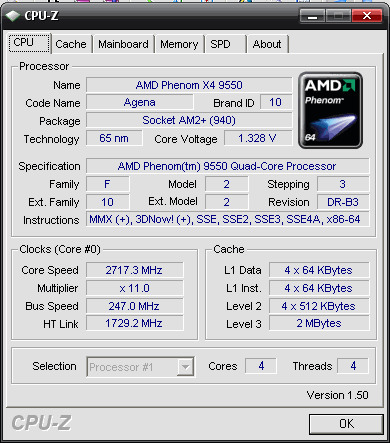 | Процессор (ядро) | AMD Phenom X4 (Agena) |