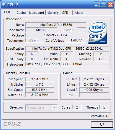| Разгон, максимально стабильная частота (FSB x Ratio) | 3731 (533 x 7.0) |