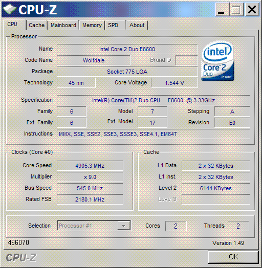 Результат разгона Intel Core 2 Duo (Wolfdale)