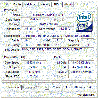 Результат разгона Intel Core 2 Quad (Yorkfield)