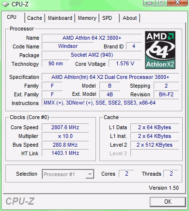 Результат разгона AMD Athlon 64 X2 (Windsor)
