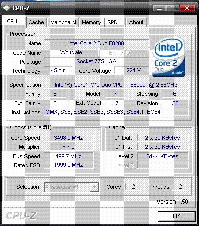 | Разгон, максимально стабильная частота (FSB x Ratio) | 3500 (500 x 7.0) |