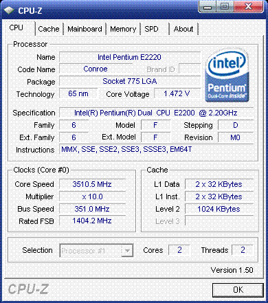 Результат разгона Intel Pentium Dual-Core (Conroe-1M)