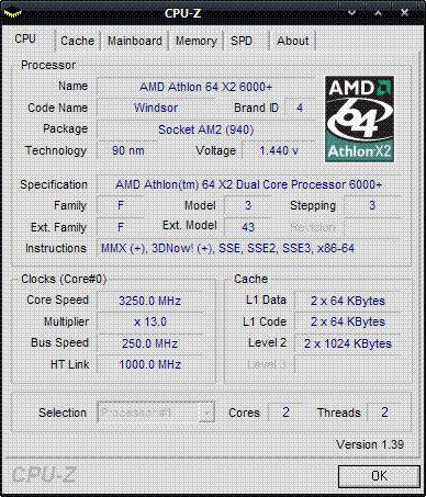 | Процессор (ядро) | AMD Athlon 64 X2 (Windsor) |