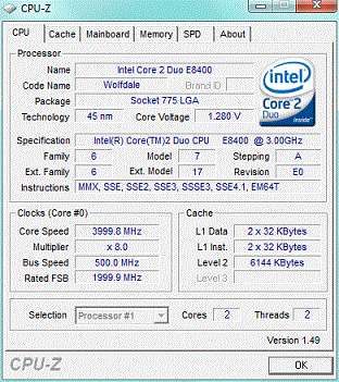 Результат разгона Intel Core 2 Duo (Wolfdale)