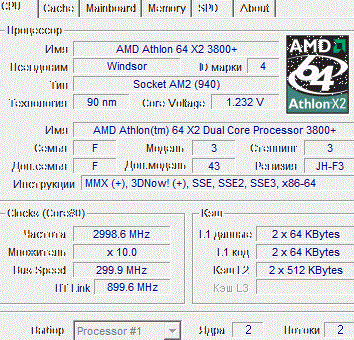 | Процессор (ядро) | AMD Athlon 64 X2 (Windsor) |