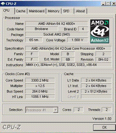 Результат разгона AMD Athlon 64 X2 (Brisbane)