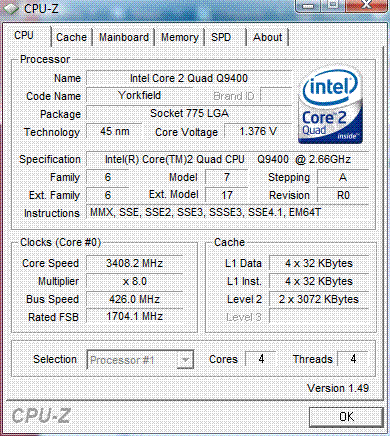 Результат разгона Intel Core 2 Quad (Yorkfield)