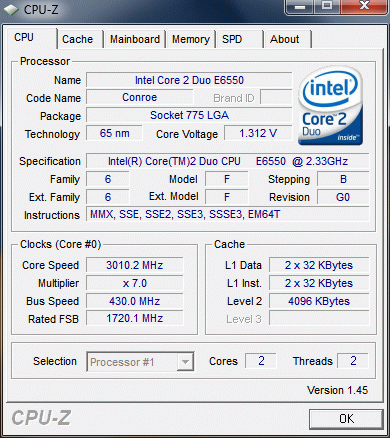 Результат разгона Intel Core 2 Duo (Conroe)